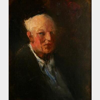Glenn C. Henshaw (American 1880-1946)- ''Lobster Fisherman''- oil on canvas, multiple scratches lower left near middle, 10 1/2'' stretch of in-painting along right edge. 24 x 20'' | |