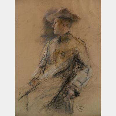 Glenn C. Henshaw (American 1880-1946)- Male Portrait- chalk pastel on paper, 1911, signed and dated Hinshaw 1911 and inscribed Xmas under signature lower right, browned edges, multiple horizontal creases along right side. 24 x 18'' | |
