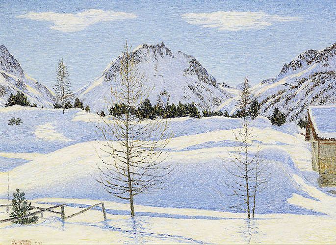 | Winterlandschaft bei Maloja. Blick zum Monte del Forno. 1947. | |