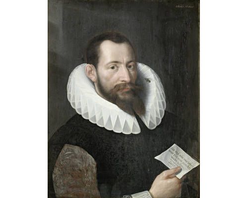| Portrait of gentleman, half-length, in a black tunic and a white lace collar, holding a letter | |