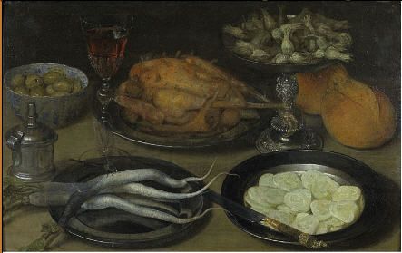 Nature morte aux victuailles et pièces d'orfèvrerie