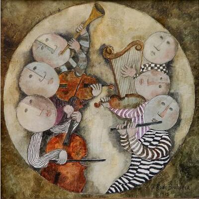 ''The Sextext''- oil on canvas, 1973, signed Graciela Rodo Boulanger 1973 lower right. 19 x 19'' | |