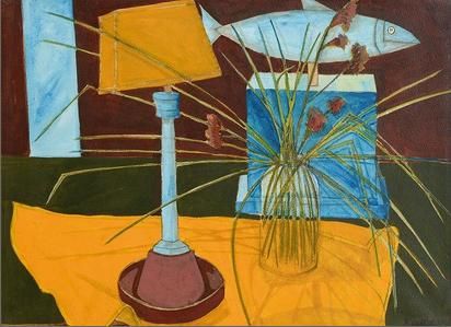 Still Life - Lamp and Vase of Flowers