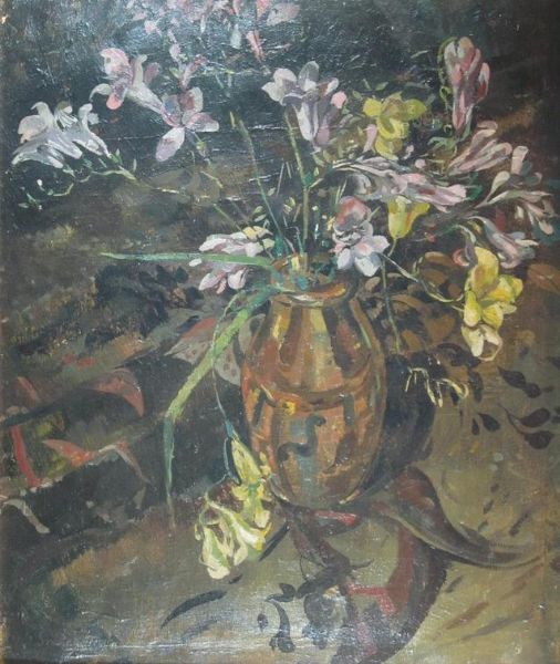 STILL LIFE WITH YELLOW AND PINK FLOWERS