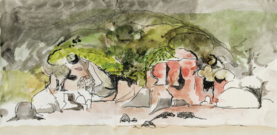 | Ink and watercolour on paper | |