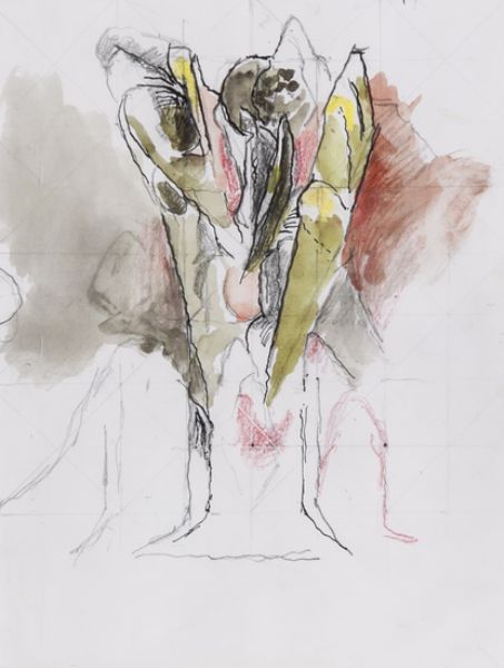 | Paintbrush ink, watercolour, graphite and coloured crayon on paper | |