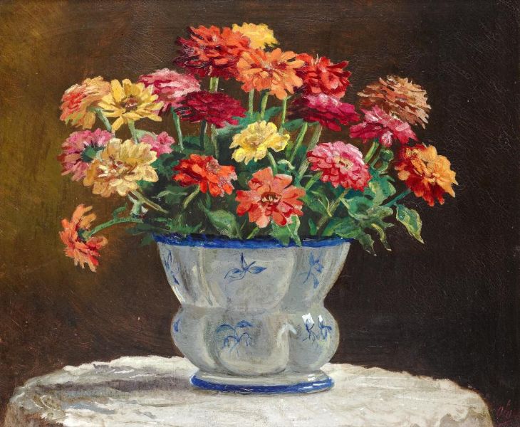 STILL LIFE WITH ZINNIAS