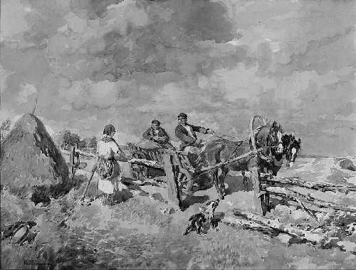 Bauern im Pferdewagen