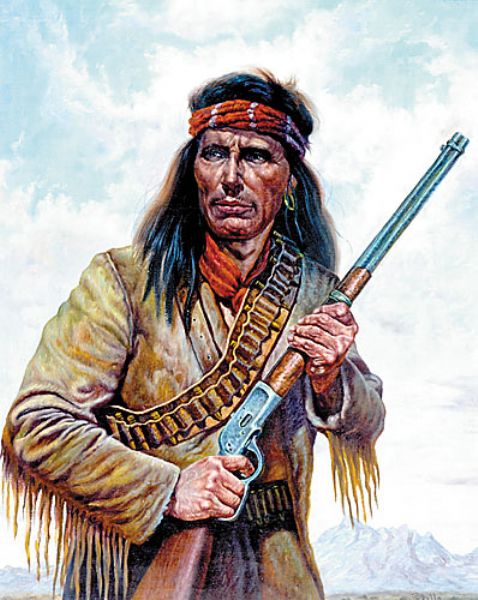 PORTRAIT OF NATIVE AMERICAN INDIAN WITH RIFLE