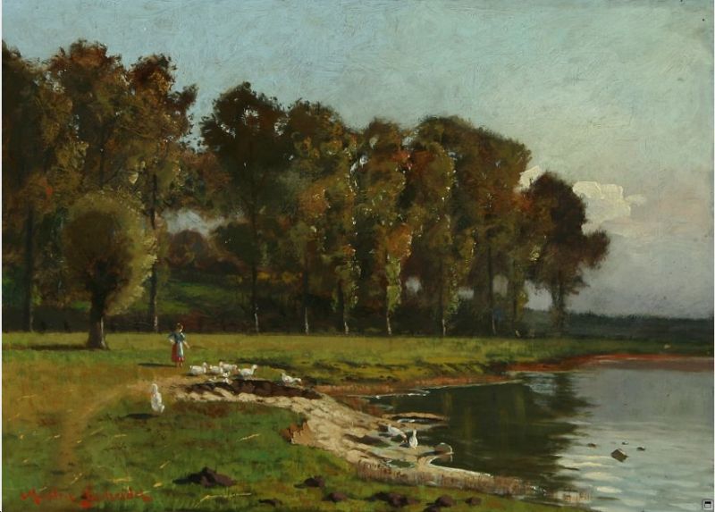 Landscape with young women and her geese