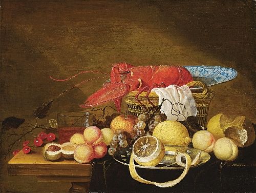 FRUIT STILL LIFE WITH BREAD AND LOBSTER