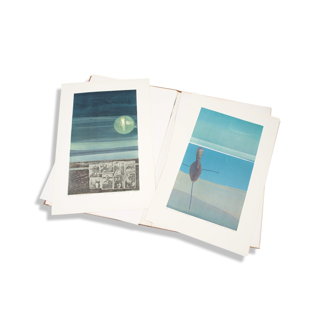 sheet size: 65 by 42,5cm; portfolio case: 66 by 44 by 1,5cm; numbered ‘printers proof VII-X’ in pencil in the margin, each print in the portfolio limited to 75 and 10 printer's proofs, published by Totem | |