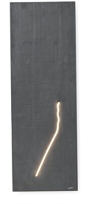 Lead on wooden board with neon tube