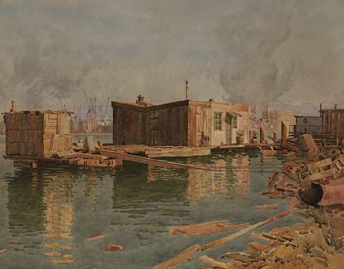 Houseboat with busy port