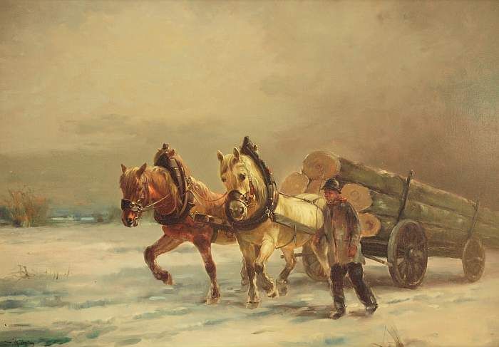 Pferdefuhrwerk in verschneiter Winterlandschaft