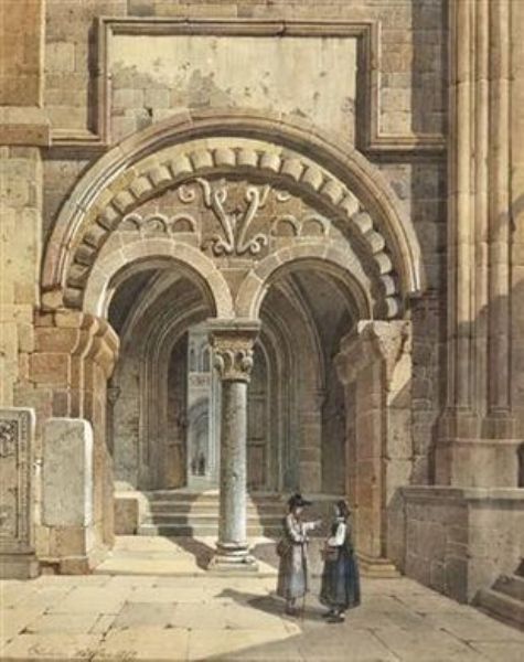 Gespräch vor dem romanischen Portal des Domes von Wetzlar