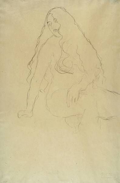 Seated Female Nude with Long Hair, c. 1917 - 1918