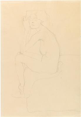 | Seated nude turned to the left, with hands to the right temple | |