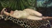 'Female nude reclining on a leopard skin'