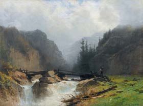GEBIRSGBACH MIT BRÜCKE UND REISIGSAMMLER