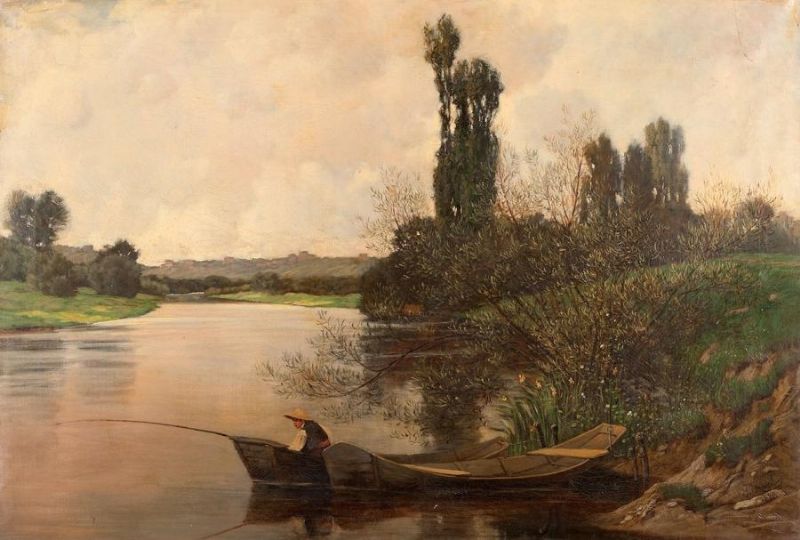 Paysage lacustre à la barque
