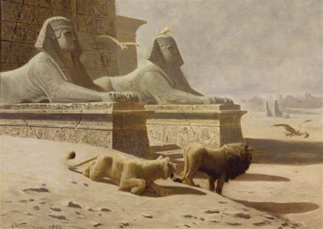 Lions guarding an Egyptian tomb