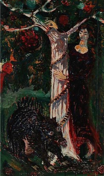 Composition with woman and boar