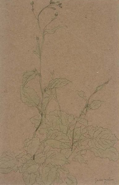 Pencil and watercolour on buff paper