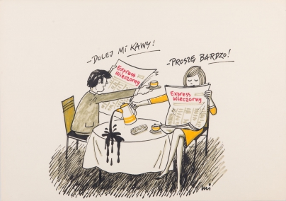 | "Dolej mi kawy!", satirical illustration, 80's of 20th Century | |