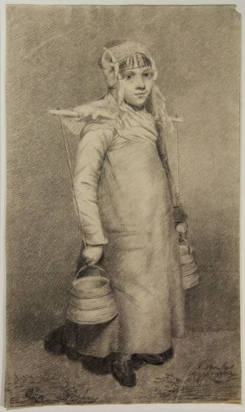 Girl carrying two buckets with a yoke