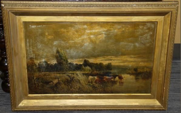 River landscape with cattle watering