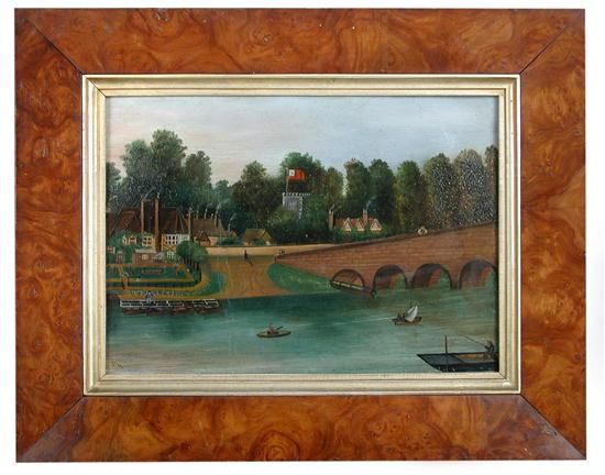 A View of Sonning Bridge with Thames river craft and figures