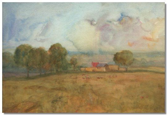 Impressionist landscape with barns