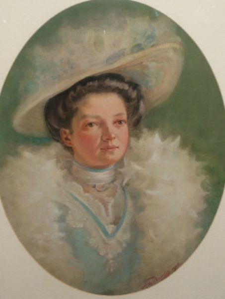 Portrait of a young lady, bust length wearing a feather boa and hat