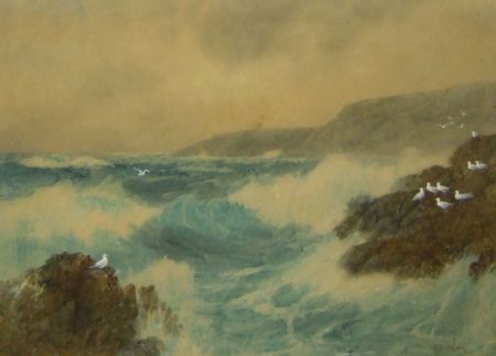 Rocky and Stormy Coastal View with Seabirds