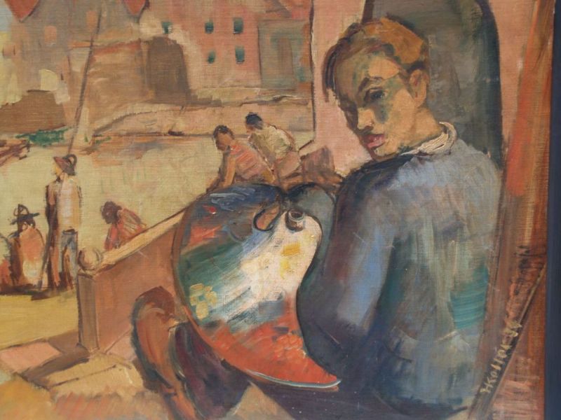 Maler am Hafen mit Anglern