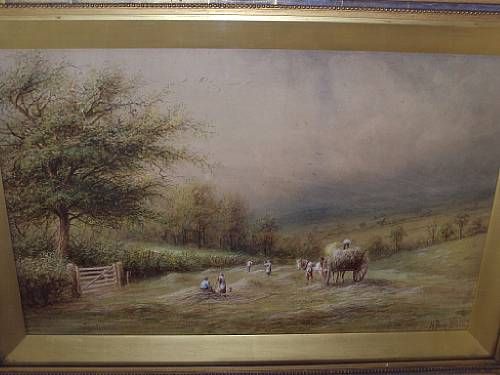 Hay gatherers before a landscape