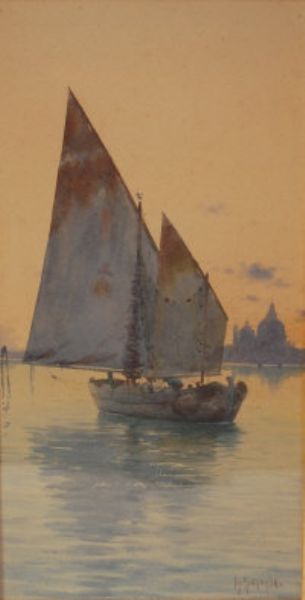 Sailing boat on calm Venice waters with Doge's Palace beyond