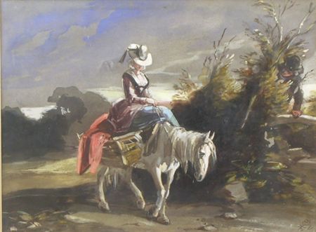 A LADY ON HORSEBACK WITH A ROGUE IN THE BUSHES
