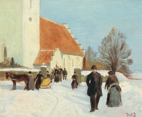 | Winter scenery with churchgoers | |