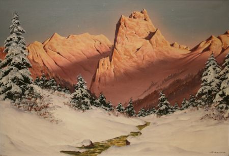 Winter Mountain Landscape at Sunset