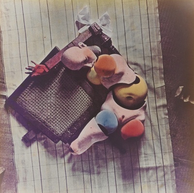 Chromogenic print, printed 1970s, mounted to original passe-partout. Dedicated in the lower margin in blue ink 'à Man Ray, avec les hommages de Hans Bellmer' and with the blind stamp 'AE'.