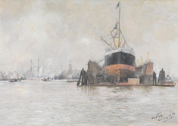 Regenwetter im Hamburger Hafen, Dampfer "Lydia" im Trockendock