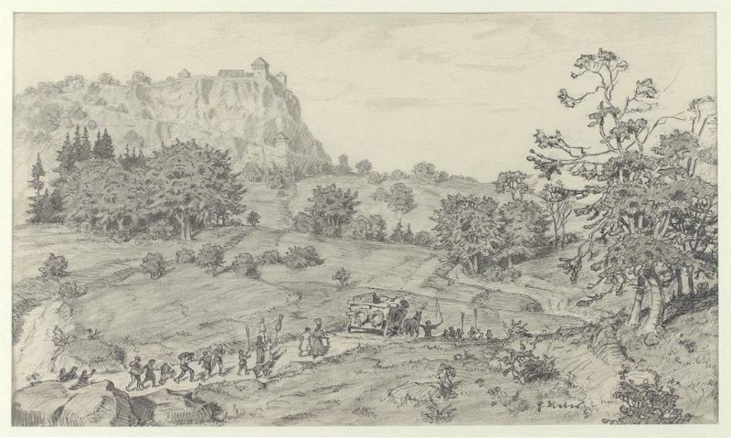 Blick auf den Hohentwiel, im Vordergrund Figuren
