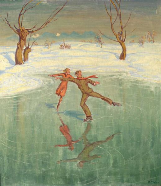 Paar beim Schlittschuhlaufen auf dem Bodensee