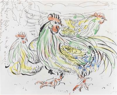 Frauenakt und Hähne