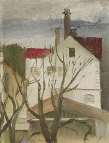 Haus (verso: Stillleben mit zwei Tellern und einem Messer)
