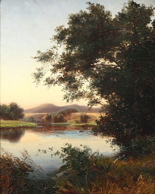 | Morning light over the bank of a lake, near Vestbirk, Jutland | |