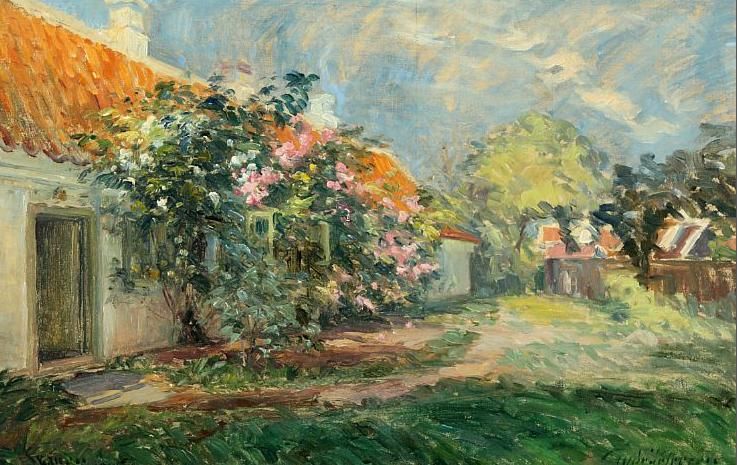 | Summer scenery fom the house of Michael Ancher with roses in blossom | |