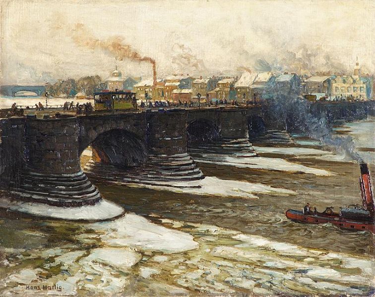 Die Augustusbrücke in Dresden bei Eisgang der Elbe